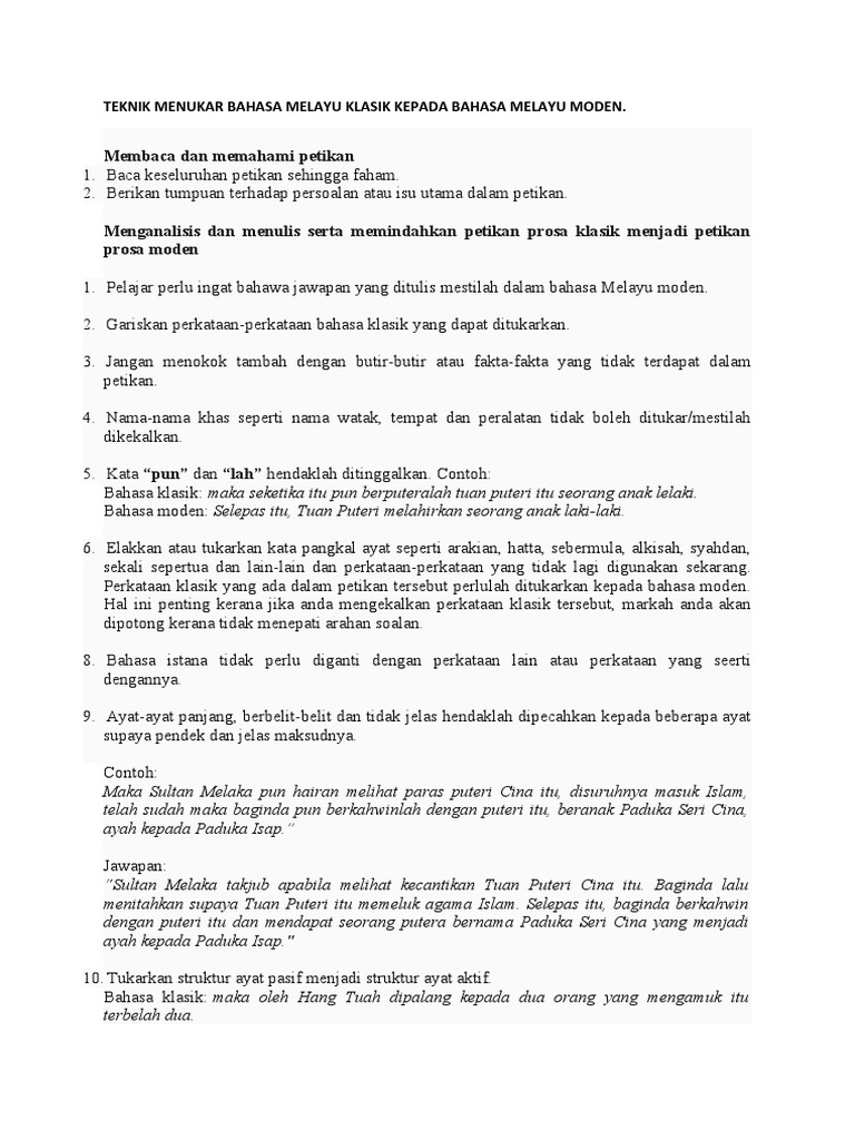 Teknik Menukar Bahasa Melayu Klasik Kepada Bahasa Melayu Moden Pdf